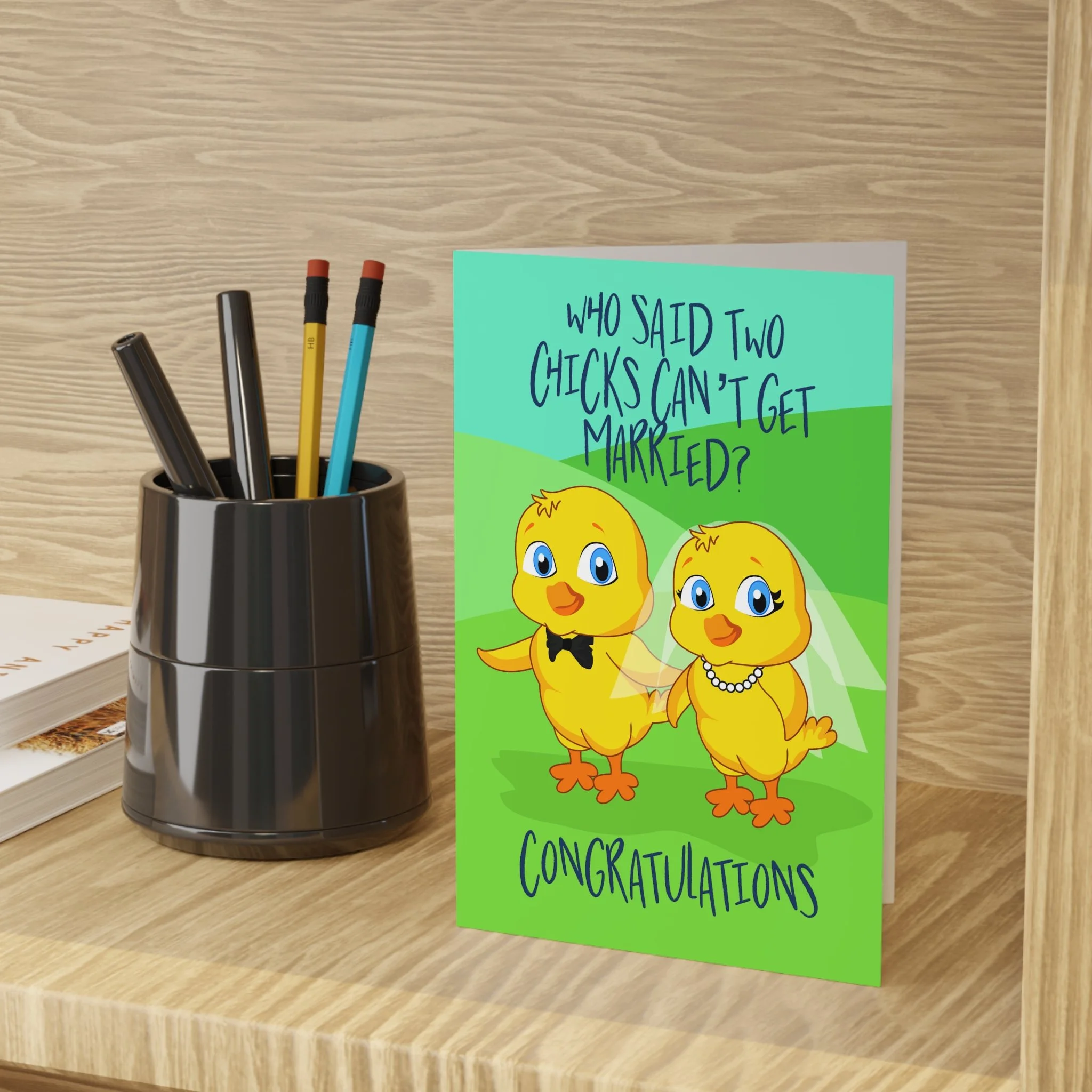 Shop › Two Chicks Image 1 of 3 Image 2 of 3 Image 3 of 3 Two Chicks $8.14 .: One size: Closed (4" x 6") and Open (8" x 6").: Blank Inside.: Envelopes included Quantity: Purchase Added! .: One size: Closed (4" x 6") and Open (8" x 6").: Blank Inside.: Envelopes included